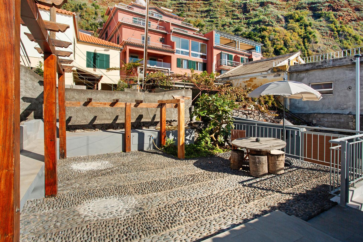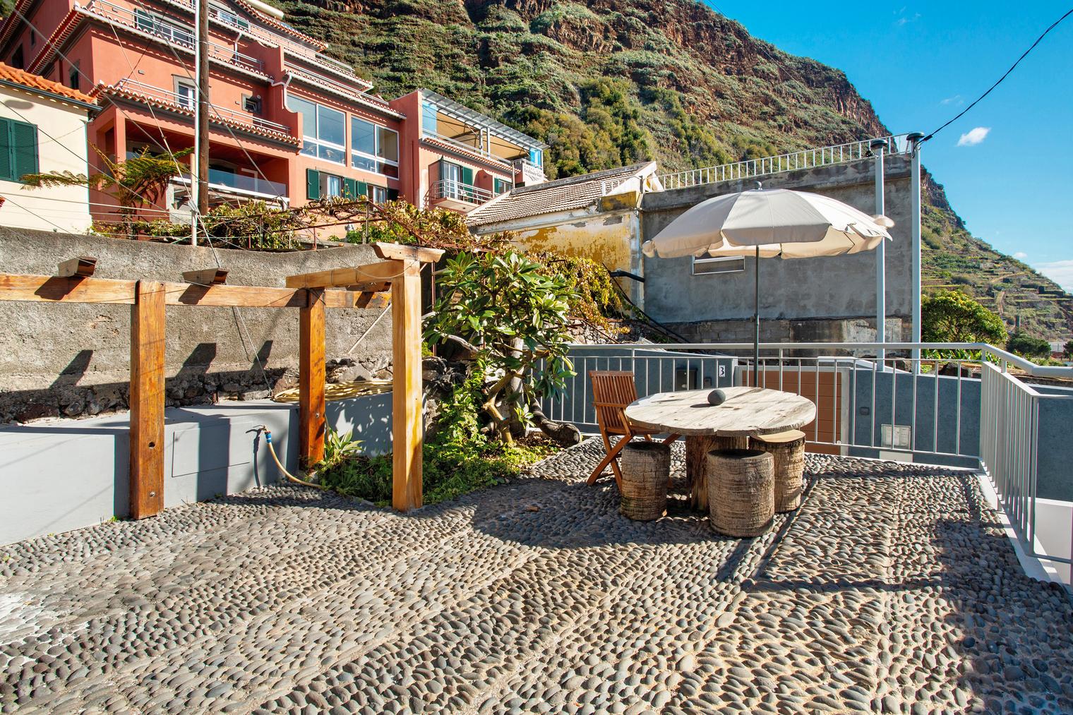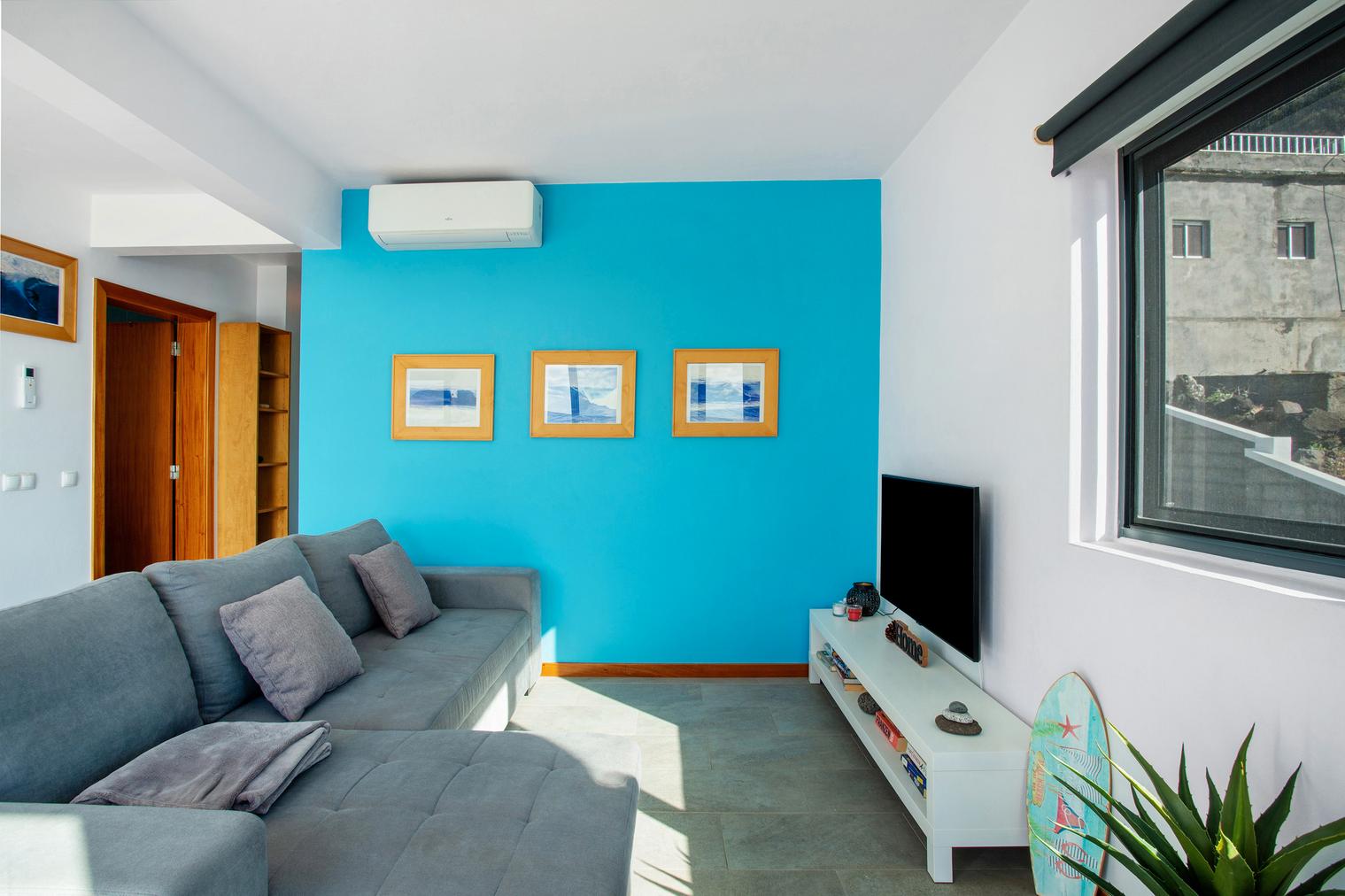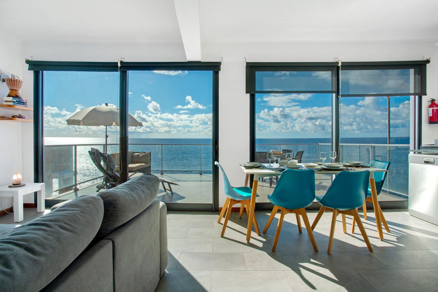 This is the best family Wave House apartment contemporary minimalist style (solar powered) - we call it Unit 3 and it is a 2 bedroom oceanfront - T2 - with large master bedroom and smaller kid room, a fully equipped kitchen with granite countertops and large fridge, bathroom with shower, free cable TV and WIFI internet, backyard with organic garden and sitting area, spacious veranda (4 meters by 6.5 meters), amazing view of ocean from every room, laundry room near backyard - it is in the best location in the best village in Madeira!