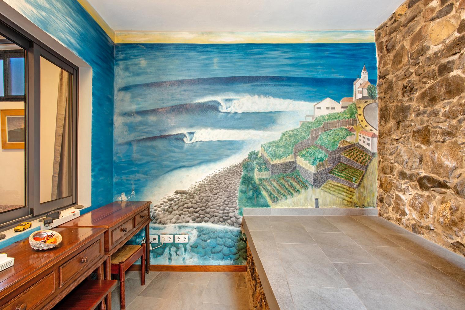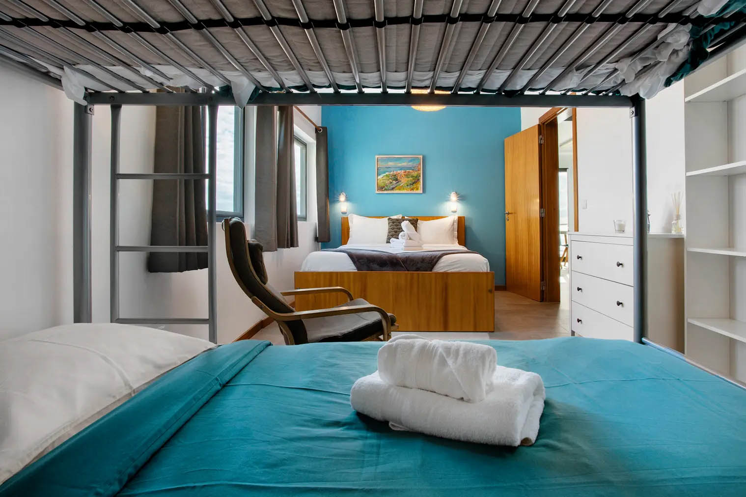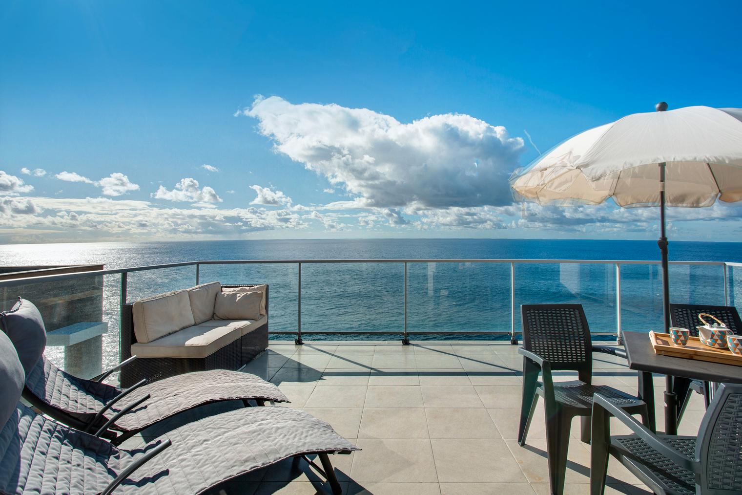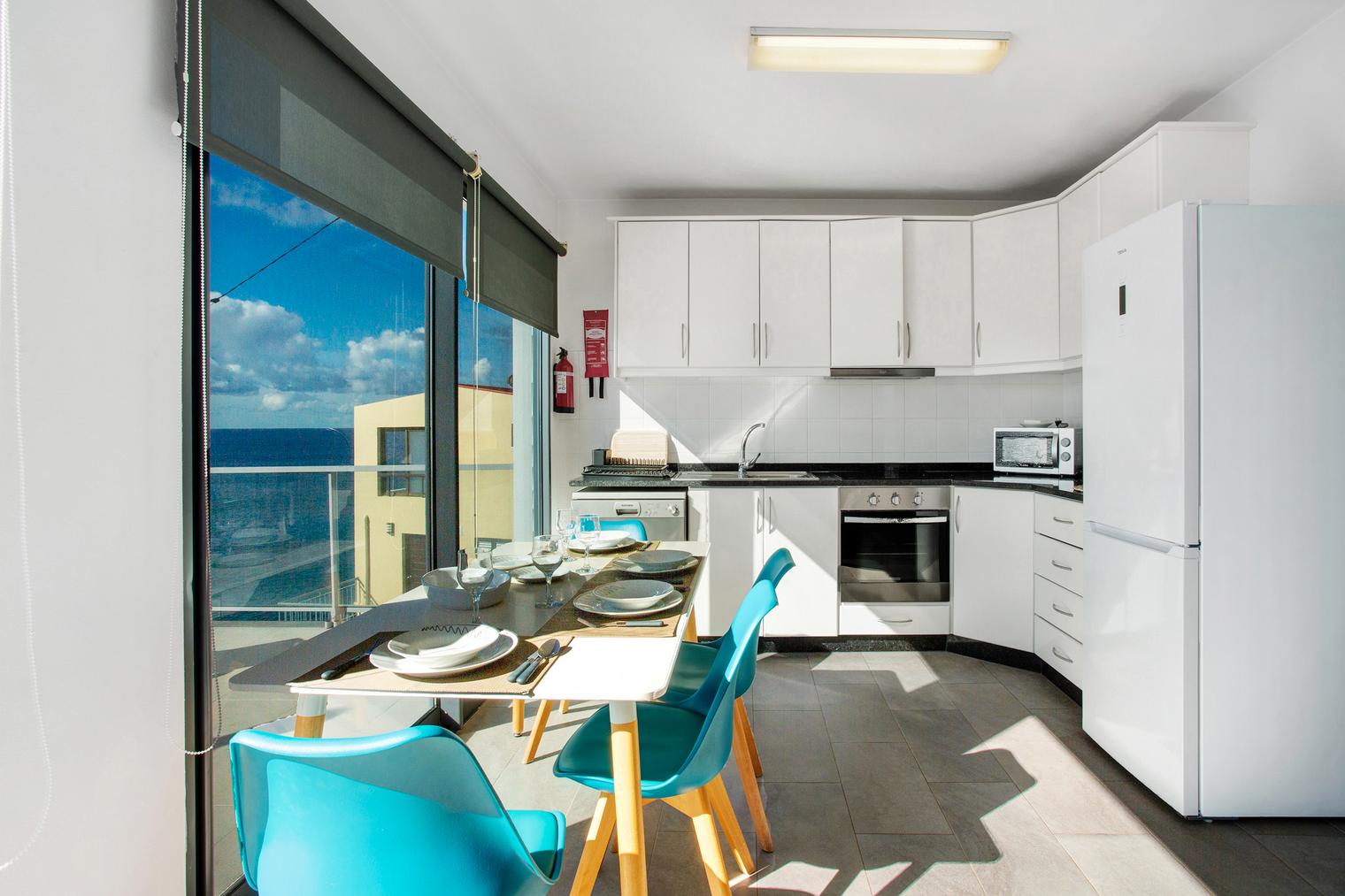 This is the best family Wave House apartment contemporary minimalist style (solar powered) - we call it Unit 3 and it is a 2 bedroom oceanfront - T2 - with large master bedroom and smaller kid room, a fully equipped kitchen with granite countertops and large fridge, bathroom with shower, free cable TV and WIFI internet, backyard with organic garden and sitting area, spacious veranda (4 meters by 6.5 meters), amazing view of ocean from every room, laundry room near backyard - it is in the best location in the best village in Madeira!